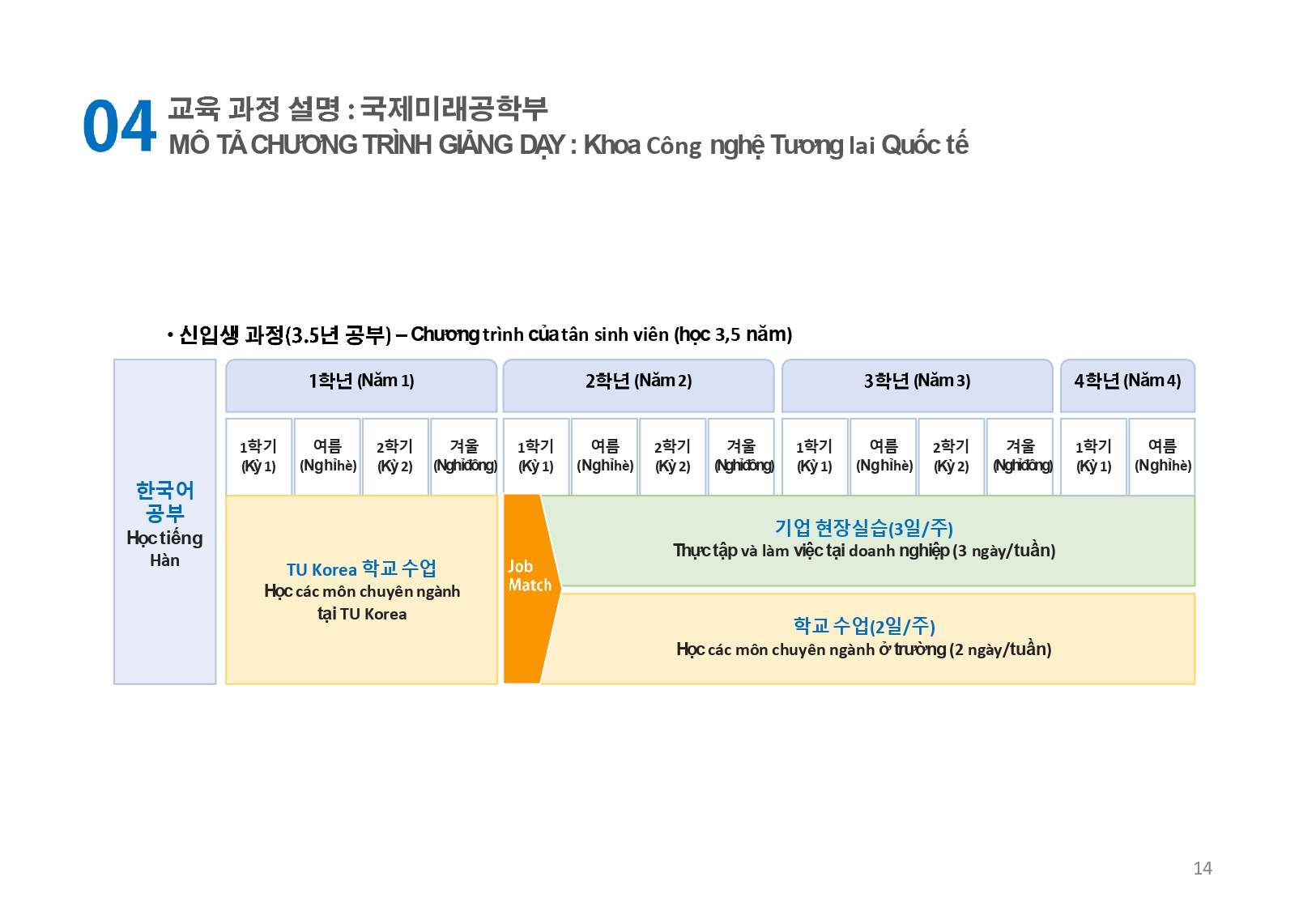 - Vận hành học kỳ linh hoạt để tốt nghiệp sớm. Thời gian học ngắn 3.5 năm, 3 ngày thực tập, 2 ngày học tại trường.