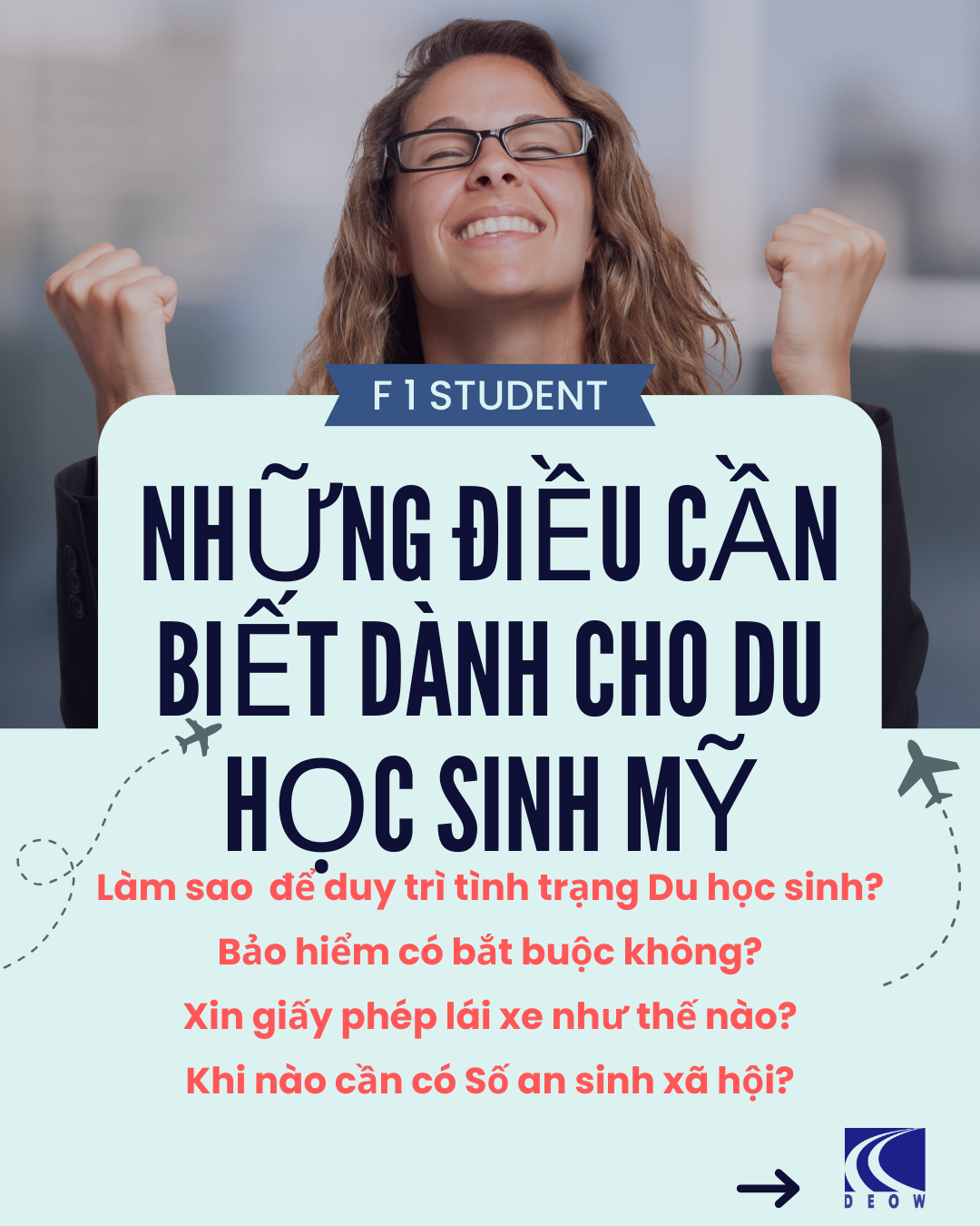 Với hệ thống Trường đối tác rộng khắp các bang nước Mỹ (Hoa Kỳ) ở tất cả các hệ đào tạo bao gồm Trung học, Cao đẳng, Đại học, Tư vấn du học Mỹ luôn là thế mạnh tại Du học DEOW Vietnam trong nhiều năm qua. Ở bài viết này, DEOW xin trích dẫn một số câu hỏi và trả lời thường gặp giúp cho các Du học sinh hiện tại cũng như Tương lai hiểu hơn về chính sách và quyền lợi của một sinh viên quốc tế trên đất Mỹ nhé.