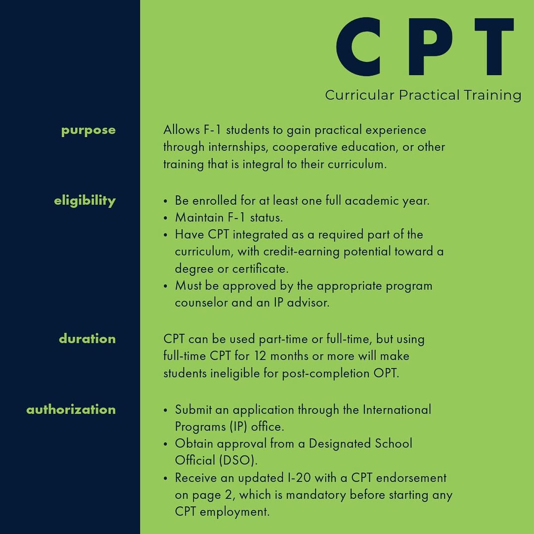 Sinh viên quốc tế có thể làm việc tối đa 19,5 giờ một tuần trong khuôn viên trường, nếu bạn có thành tích học tập tốt. Để được phép làm việc ngoài khuôn viên trường, bạn phải được cấp phép CPT hoặc OPT.