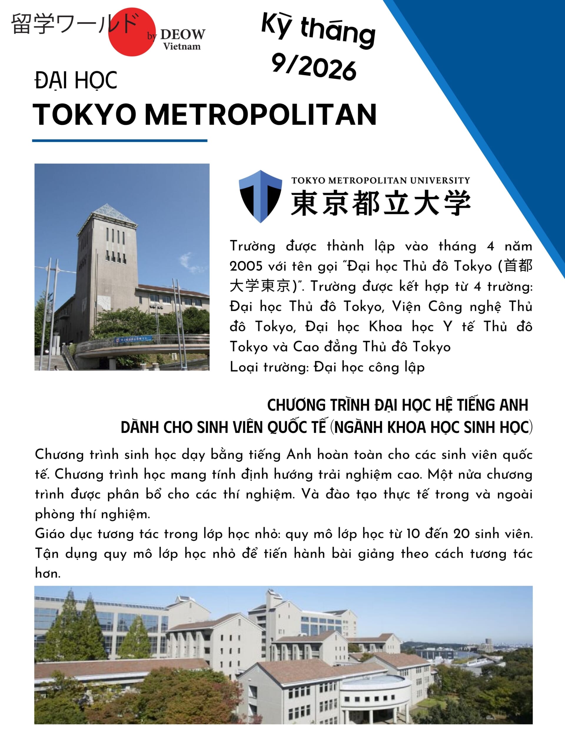 CHÍNH SÁCH TUYỂN SINH KỲ THÁNG 10/2026: KHOA SCIENCES, ĐẠI HỌC THỦ ĐÔ TOKYO