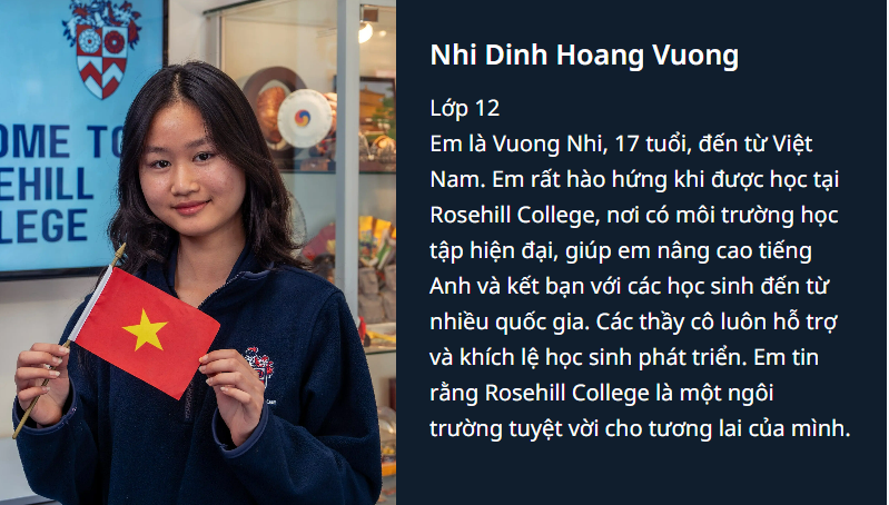 🌟 Rosehill College mang đến một môi trường thân thiện giúp học sinh quốc tế dễ dàng hòa nhập và cảm thấy thân thuộc. Trường cũng có chương trình hỗ trợ tiếng Anh được thiết kế riêng nhằm giúp học sinh quốc tế cải thiện kỹ năng ngôn ngữ, tăng cường sự tự tin trong giao tiếp, hướng đến đạt thành tích cao học tập.